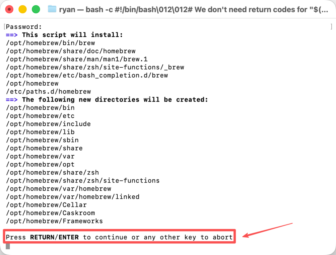 /bin/bash -c "$(curl -fsSL https://raw.githubusercontent.com/Homebrew/install/HEAD/install.sh)"注意,要复制全,这条命令很长,别复制少了,引号也是要带上。