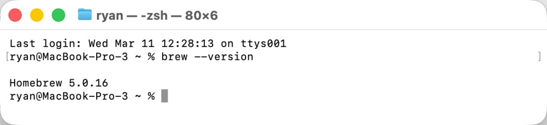 brew -v如果输出了类似 Homebrew 5.0.16 的版本号,说明这个软件商店管理器就安装成功了。